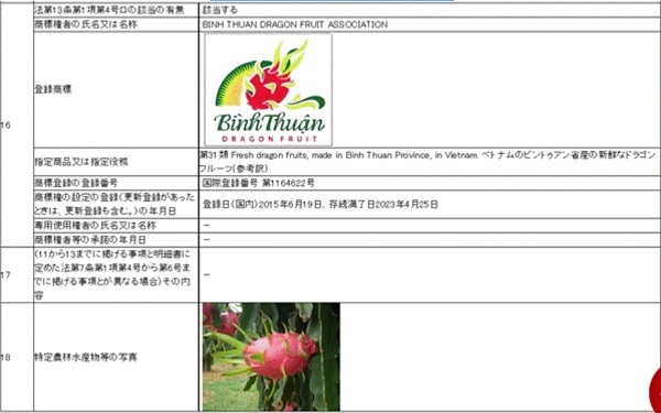 Announced information about Binh Thuan dragon fruit of Vietnam granted Geographical Indication Certificate No. 110 in Japan.