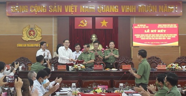 Attending the Signing Ceremony, there were Mr. Nguyen Ngoc He, Member of the Standing Committee of the City Party Committee, Vice Chairman of the People's Committee of Can Tho City; Mr. Ngo Anh Tin, Member of City Party Committee, Director of Department of Science and Technology; Mr. Nguyen Van Thuan - Member of Standing Committee of the City Party Committee, Director of Can Tho City Public Security and leaders of departments, units under 02 units and media agencies attended and reported.