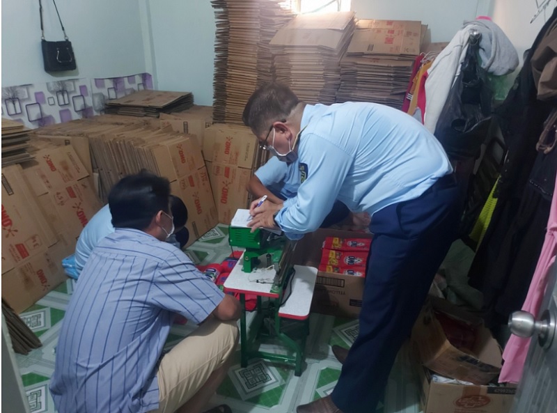The market management force of Vinh Long province discovered that a facility was converting a series of Surf-branded laundry detergent packages into small OMO-branded packages.