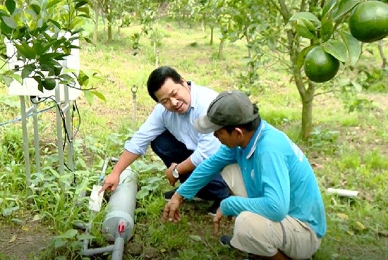 According to Mr. Hung, ionized water has unique physical and chemical characteristics that contribute to improving the quality of irrigation water and saving water, supporting the absorption of water and nutrients by plants to help plants grow faster, increase productivity and quality. Ionized water also helps to improve the soil, balance the ecosystem in the soil, which is one of the benefits in agriculture in accordance with the current situation of "living with salt".