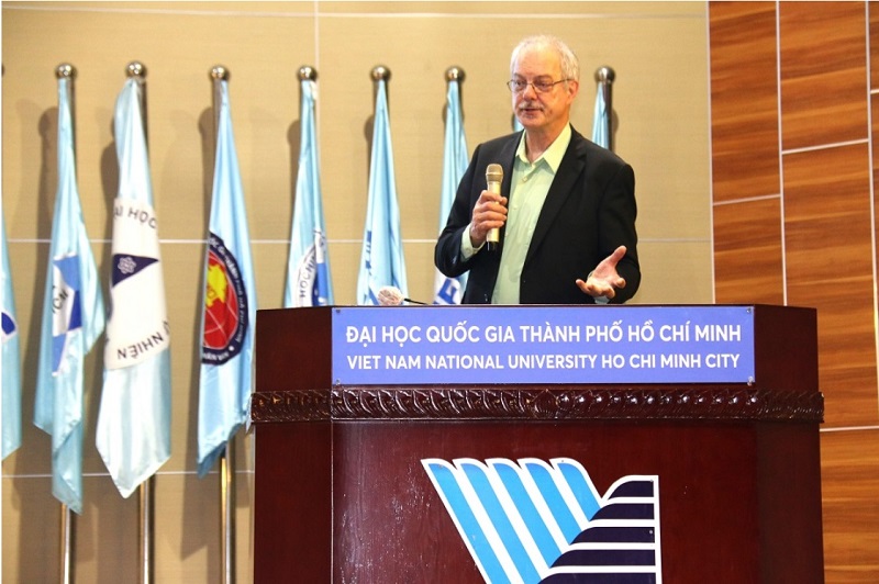 Prof. Morten P. Meldal gave a lecture on the advancements and importance of "Click Chemistry" at the opening ceremony of the National Student Chemistry Olympiad, taking place at the University of Natural Sciences, VNU-HCM.