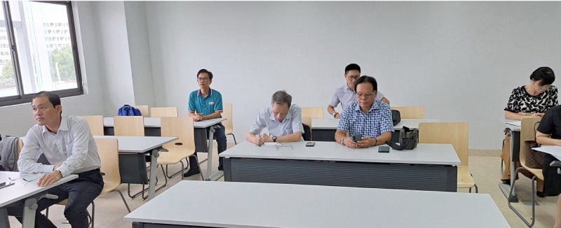 Dr. Ngo Anh Tin, Director of Can Tho City Department of Science and Technology (left corner) with the delegation of National Economics University and University of Economics Ho Chi Minh City visited and worked at the High-Tech Building - Can Tho University