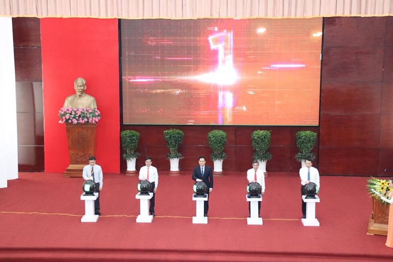 Deputy Minister Nguyen Hoang Giang and leaders of Hau Giang province performed the opening ceremony of the Week of Digital Transformation and Innovation Startup - Mekong Delta - 2023.