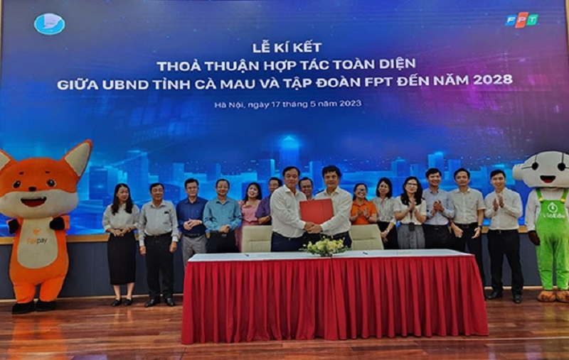 Practically celebrating Vietnam Science and Technology (S&T) Day 18/05. On 17/05/2023, the People's Committee of Ca Mau province and FPT Joint Stock Company held a signing ceremony of a comprehensive cooperation agreement on digital transformation to 2028.
