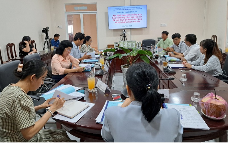 In the afternoon of June 16, 2023, Can Tho City Department of Science and Technology met the Council to evaluate and accept the city-level S&T task "Determining antioxidant and antifungal activities of young rice for use as functional foods and cosmetics for skin care cosmstic". MSc. Tran Hoai Phuong, Deputy Director of Can Tho city Department of Science and Technology is the Chairman of the Council. The study is carried out by Dr. Nguyen Phu Tho and Mr. Dang Chi Thien. Can Tho Application of Science and Technology Advancement Center is in charge of implementation.