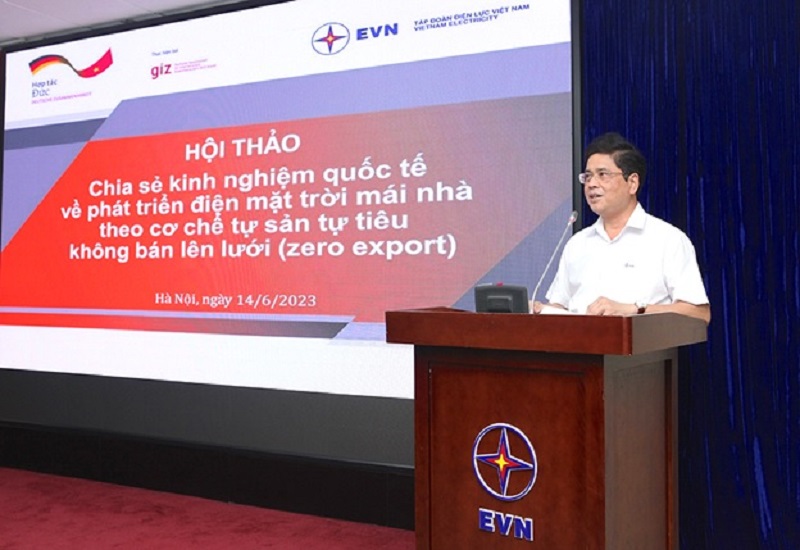 On June 14, 2023, in Hanoi, Electricity of Vietnam (EVN) and German Development Cooperation (GIZ) jointly organized an international experience sharing workshop on rooftop solar power development according to the mechanism of self-production, self-consumption, not sold on the grid.