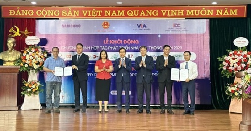 The Ministry of Industry and Trade and Samsung Vietnam have jointly organized the Kick-off Ceremony of the first phase of the Smart Factory Cooperation Project in 2023. This activity is part of the Smart Factory Cooperation Project developed by Samsung Vietnam to improve the professional ability of the team of domestic consultants, improve the production operation capacity on the information technology platform of the enterprise.