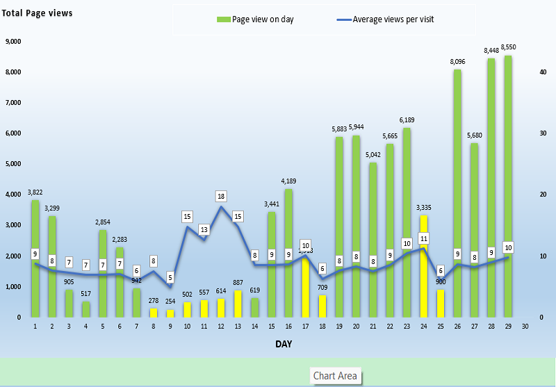 - The total number of page views in February 2024 is 92,322 (average 3,183 page views/day). The day with the highest number of page views is 8,850 (February 29, 2024).