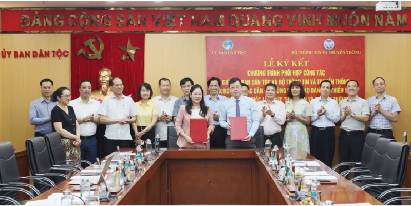 In order to promote the effectiveness of information and communication in ethnic minority areas, contributing to the effective implementation of the National Target Program for socio-economic development in ethnic minority and mountainous areas, on May 24, at Hanoi, the Ministry of Information and Communications (MIC) and the Committee for Ethnic Minorities (UBEM) have signed a coordination program on ethnic affairs in ethnic minority and mountainous areas in the field of information and communications for the period of 2024-2030.