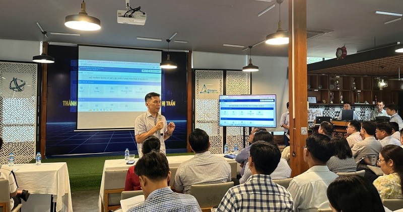 At the conference, the representative of the Ho Chi Minh City Geographic Information System Application Center introduced two softwares developed by this unit: the digital conversion system serving ward and commune level management and administration, and centralized management system of economic units.