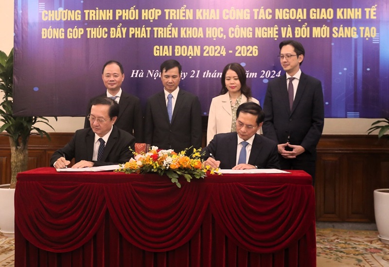 On June 21, 2024, at the Headquarters of the Ministry of Foreign Affairs, Minister of Science and Technology Huynh Thanh Dat and Minister of Foreign Affairs Bui Thanh Son signed a Program to coordinate the implementation of economic diplomacy, contributing to promoting development of science, technology and innovation for the period of 2024-2026.