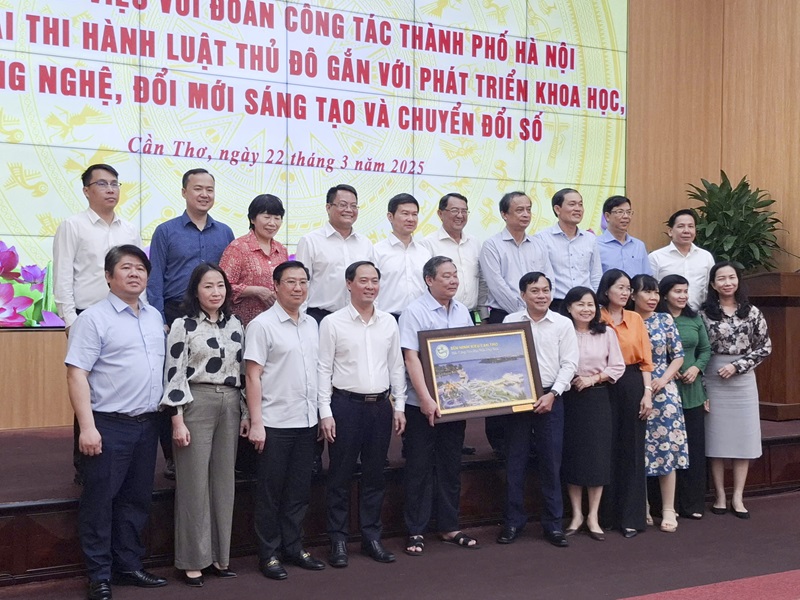 Can Tho City wellcomed and worked with the Hanoi City Delegation on implementing the Capital Law in conjunction with the development of science, technology, innovation and digital transformation.