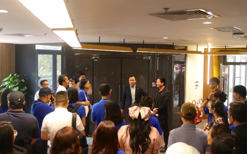 The tour took the staff and leaders of the center to many important locations in Ho Chi Minh City, starting from Metro Line 1 - the city's first railway line, marking a major step forward in the development of public transport infrastructure. The delegation then moved to the High-Tech Park to visit HD Bank's Galaxy Innovation Hub, and finally visited the water filtration process at Saigon Clean Water Investment and Trading Joint Stock Company, and listened to Bung Tran's sharing about Google's AI tools and activities to promote digital transformation in education.