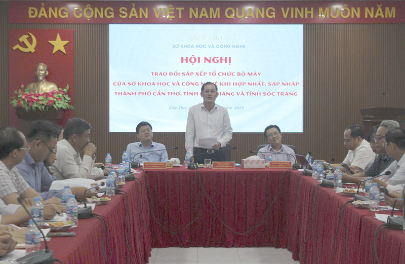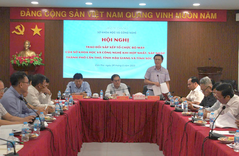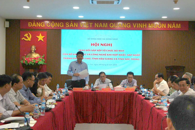 In the afternoon of May 29, 2025, leaders of Departments of Science and Technology of Can Tho City and Hau Giang and Soc Trang provinces had a meeting to discuss plans to rearrange and reorganize the apparatus of the Department of Science and Technology after merging and consolidating the areas of these three localities.